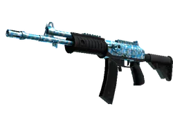 The Galil AR | Aqua Terrace is a skin in CS:GO that was added to the game on May 26, 2015, as part of The Rising Sun Collection, which was released alongside the start of Operation Bloodhound. The skin features an abstract geometric pattern in white, blue, and teal colors on the receiver and the barrel, with the remaining parts of the rifle left unpainted.